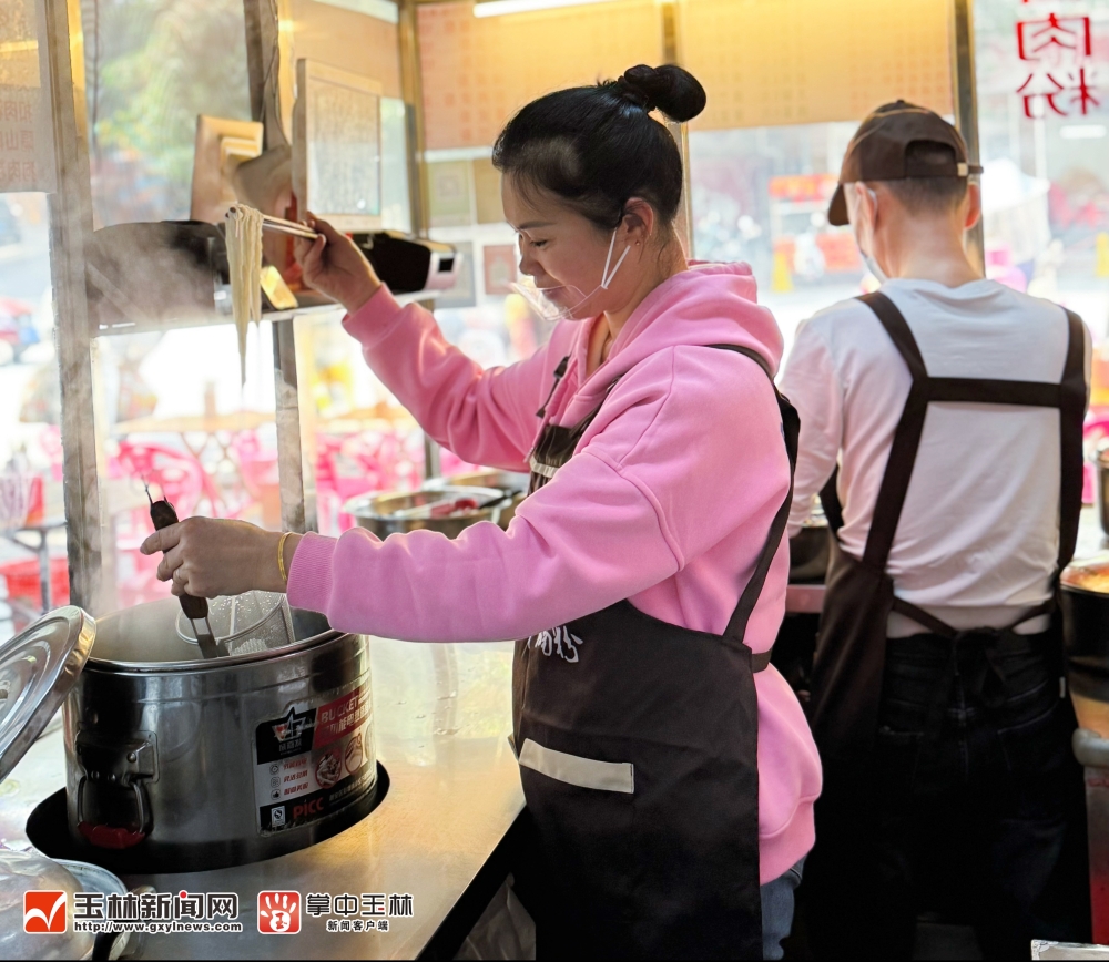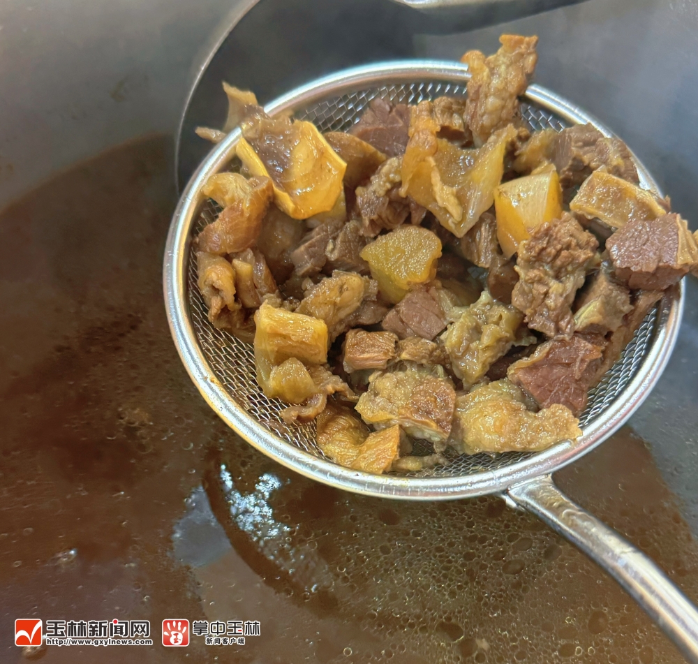 比赛当天,为马拉松跑友准备1万份牛腩粉的,是位于玉州区名山街道金玉路的胡记牛腩粉店。近日,记者来到这家店内,看到店家胡奇海和杨容夫妇正在井然有序地忙碌着。回忆起刚圆满落幕的2025玉林马拉松赛事,杨容笑着和记者说,对她而言,精心为马拉松跑友准备牛腩粉也是一场马拉松美食备战赛。