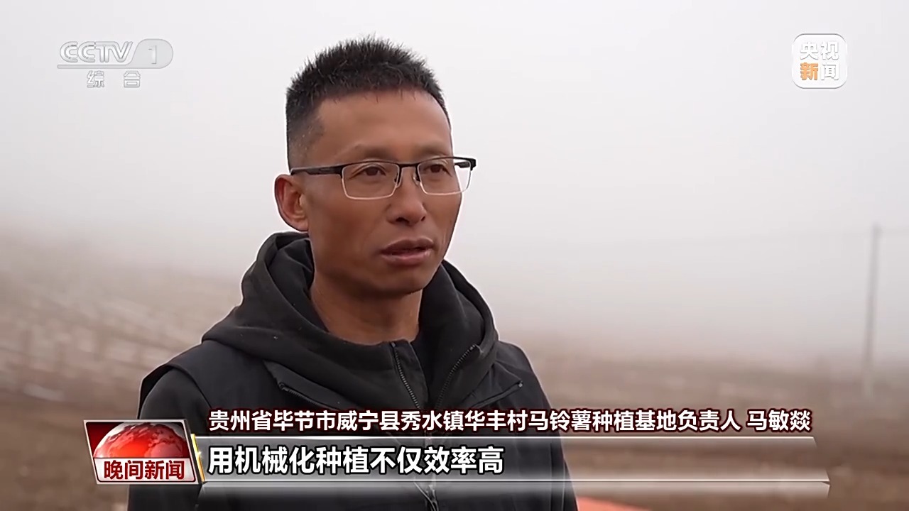 贵州省毕节市威宁县秀水镇华丰村马铃薯栽培基地负责人 马敏燚:用机械化栽培不只效率高,也降低了咱们的本钱,种出来的马铃薯株距、行距都很规整标准。
