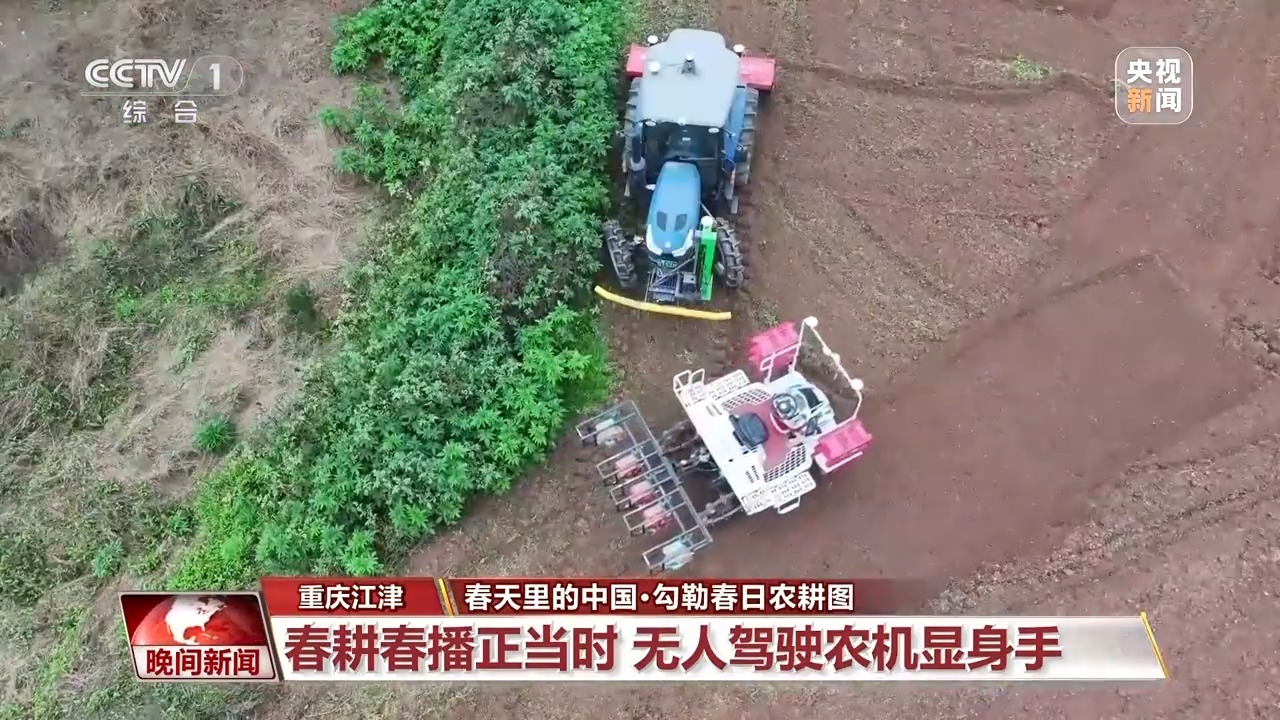 在重庆市江津区,当地使用无人驾驶农机,在山地丘陵地区展开犁地、耕种作业。不到一小时,一台中型拖拉机就可以完成4亩地的机耕作业;紧接着,无人驾驶耕种机开端耕种。跟着它的行进,一粒粒玉米种子精准地进入土壤。